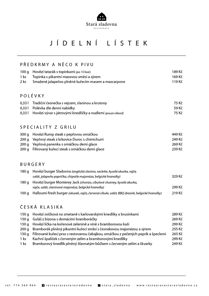 U nás ochutnáte poctivou českou kuchyni i moderní speciality z čerstvých surovin. Nabízíme příjemné prostředí pro rodinný oběd, večeři s přáteli i posezení u piva v srdci Zábřeha. Přijďte se přesvědčit, že dobré jídlo a skvělá atmosféra patří k sobě.